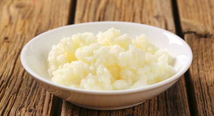 Los granos de Kefir no son granos típicos, como el trigo o el arroz, y no contienen gluten. La leche se combina con los granos de kefir y se almacena en un área caliente para «cultivar», produciendo la bebida de kéfir.