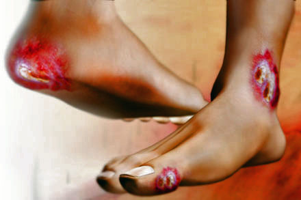 Debido a que las personas con diabetes a menudo tienen mala circulación y poca o ninguna sensación en sus pies, una herida causada por el roce de un zapato o un corte puede pasar inadvertido y empeorar. Como muchos como uno de cada cuatro personas con diabetes tendrá una úlcera en el pie – una llaga abierta – en su vida. Estas heridas se pueden infectar fácilmente. Si no se controla, la infección puede diseminarse, causando la muerte de tejidos blandos y hueso.