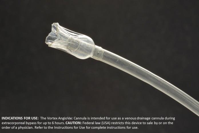 «Una vez en el lugar, la AngioVac rápidamente absorbido el coágulo mortal del corazón de Dunlap y se filtra el tejido sólido», dijo Moriarty, un UCLA radiólogo intervencionista con experiencia en la eliminación de coágulos y de imagen cardiovascular. «El sistema luego se restaura la sangre limpia a través de un vaso sanguíneo cerca de la ingle, eliminando la necesidad de una transfusión de sangre.»