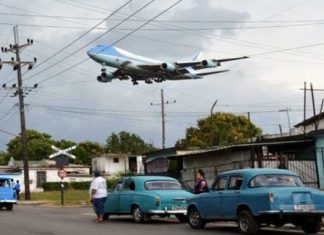 El avión presidencial estadounidense prestes a tomar tierra en la ciudad de La Habana, en Cuba - foto de portada -.