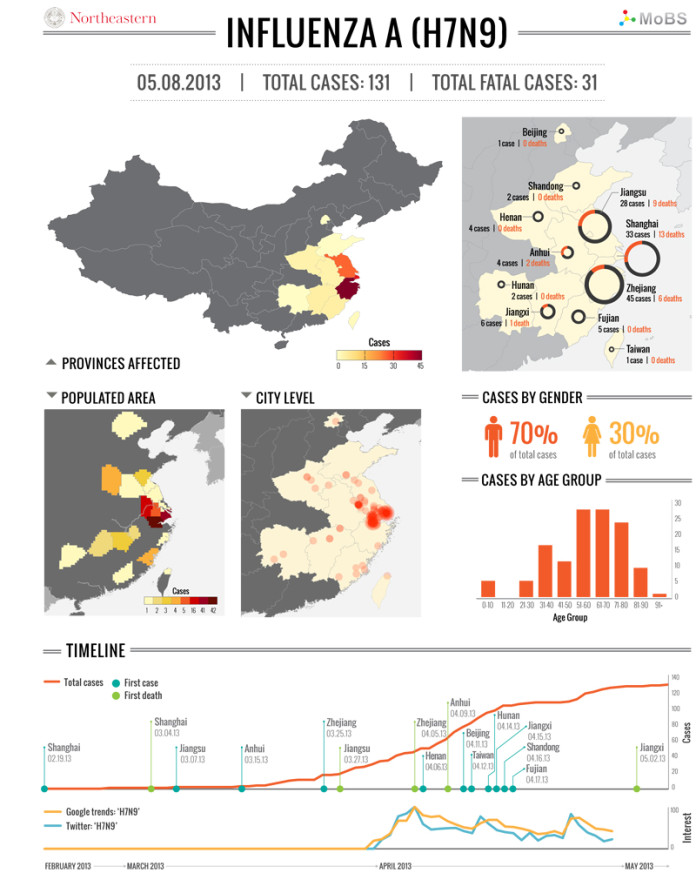 A principios de este mes, el gobierno de EE.UU. declaró que la gripe aviar H7N9 emergente «supone un gran potencial para una emergencia de salud pública.» El virus, un pariente de otras gripes de aves que hemos visto anteriormente como el H1N1 y el H5N1, se originó en China y da lugar a una infección respiratoria grave y, en algunos casos, la muerte.