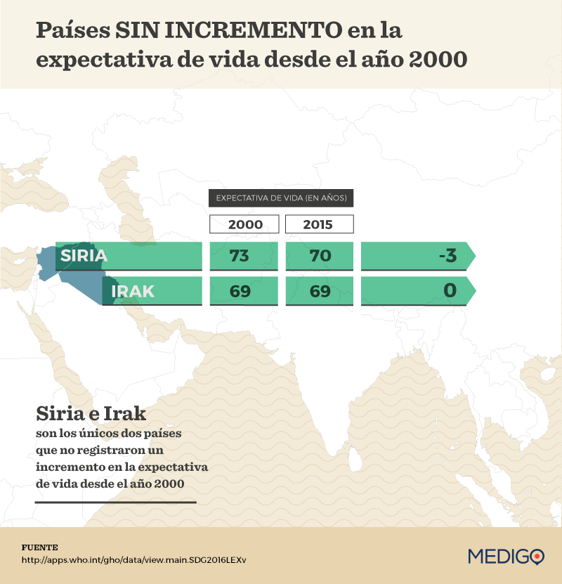 En solo dos naciones no han habido grandes mejorías en la esperanza de vida; se trata de Irak y Siria.